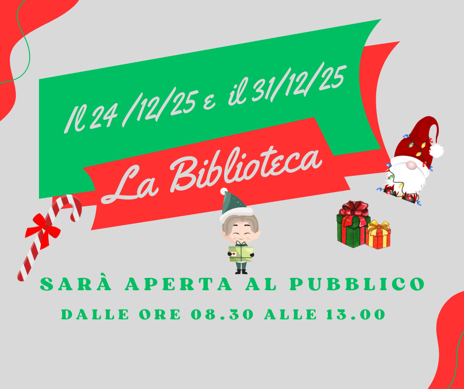 Prendi nota delle aperture straordinarie: 🗓 Mercoledì 24 Dicembre: 08:30 – 13:00 🗓 Mercoledì 31 Dicembre: 08:30 – 13:00